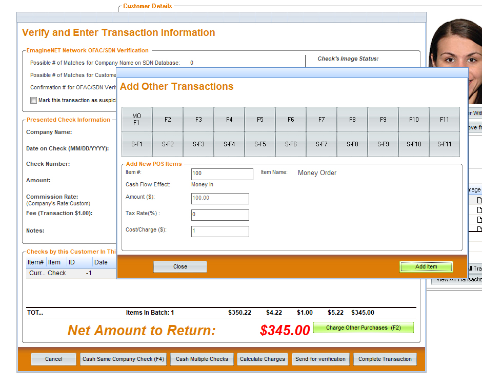 QuickCheck allows you to manage other check cashing related services including money orders, wires, phone cards, and more with QuickCheck’s POS component.