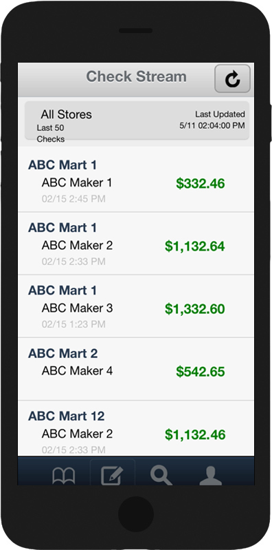 QuickCheck app can let you see your daily check cashing activity in real-time by store, check, amount, company or customer.